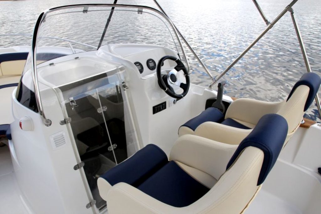 MT 520 Q is a boat with an open cockpit and a large, centrally located steering console. There is collision-free communication around the desktop. Plenty of seating space, with the possibility of adapting the recliner in the form of a removable sun deck. In the desk inside, a place to sleep for a solitary angler. The boat is recommended for family recreation, water sports or fishing.