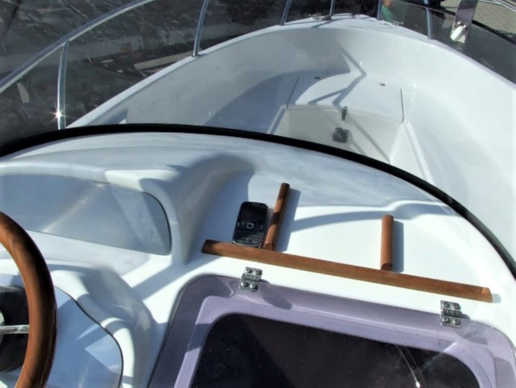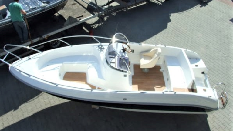 MT 630 Q is a large open deck vessel with access at the stern and bow. The boat has a deep cockpit, a comfortable control console with lockable doors. In the bow there is a large sunny deck, and when folded, there is an extendable table with seats. Possibility to install a folding roof. The boat is recommended for family recreation, tourism, open water fishing.
