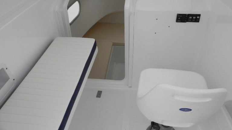 MT 700 Q Pilothouse is a multi-seat stable boat with a high board, recommended for family tourism and fishing. Closed cabin with 3 berths and 8 seats. Cockpit with a large control panel, 2 seats for the service and 8 seats for the crew.